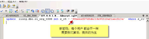 update? oiorg.dbo.oi_org_t008 set s_c5 = ‘新密碼‘? where s_c1=’sa’