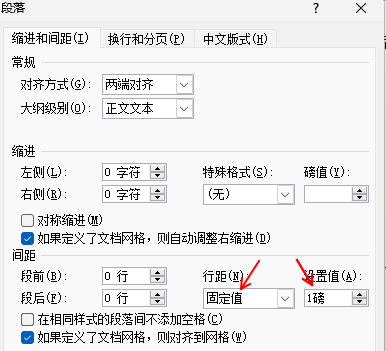 將行距設置為固定值,例如1磅,然后點擊確定。