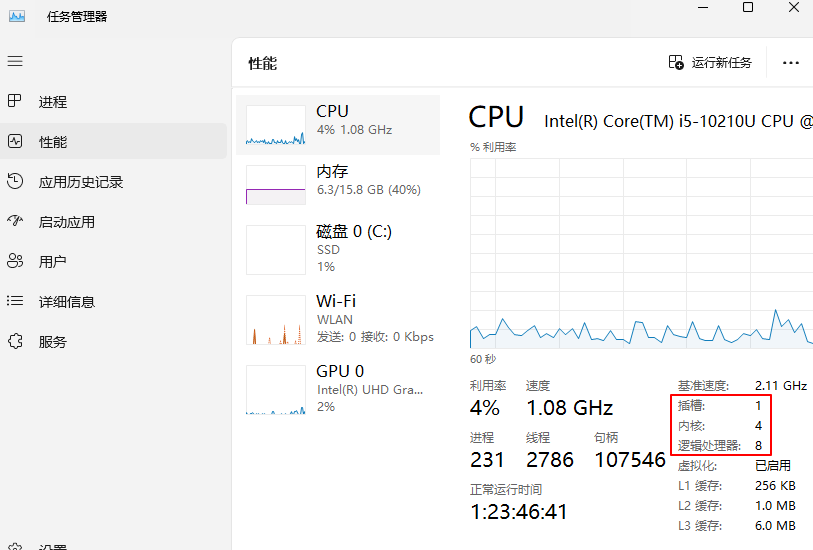 • 在該選項框中,即可看到CPU、GPU的核心數以及相關的信息。