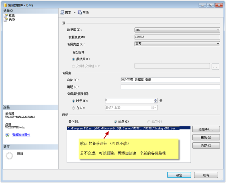 2)前面我們將mobox系統(tǒng)數(shù)據(jù)庫備份產(chǎn)生了?DMS.bak?文件,將這個文件拷貝到別的服務(wù)器,并以當(dāng)天名稱加后綴,進(jìn)行保存(如:DMS_20170222.bak).