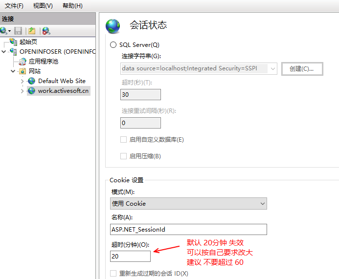 設置IIS的session (失效)過期時間(登陸后較長時間登錄有效) 設置IIS的session (失效)過期時間(登陸后較長時間登錄有效)