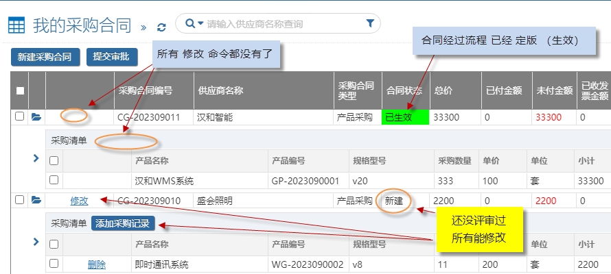 其中,購買產品是一個采購清單,屬于合同的關聯表,其變量定義解釋